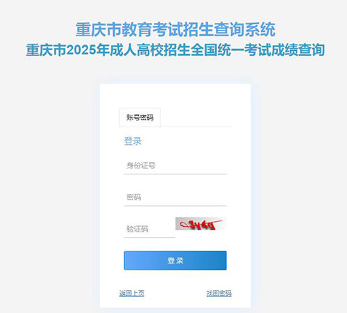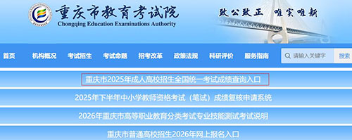 2025年成人高考成绩查询入口:登录重庆市教育考试院官网或重庆招考信息网