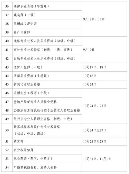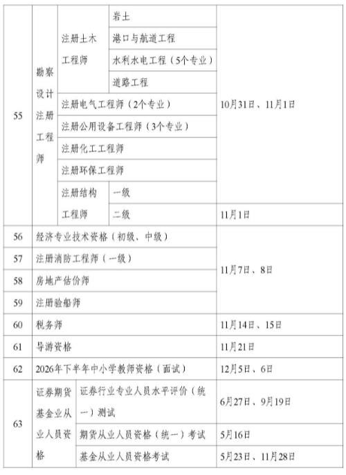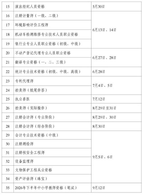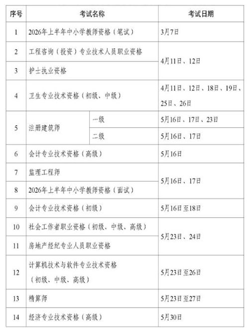 2026年专业技术人员职业资格考试时间安排
